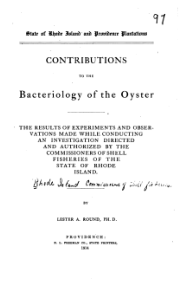 Contributions to the bacteriology of the oyster. The results of experiments and observations made while conducting an investigation directed and authorized by the commissioners of shell fisheries of the state of Rhode Island R Medicine