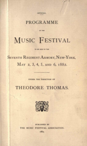 Official programme of the music festival : to be held in the Seventh Regiment Armory, New York, May 2, 3, 4, 5, and 6, 1882, under the direction of Theodore Thomas M Music
