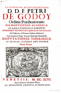 Illustrissimi, ac reuerendissimi d.d. fr. Petri de Godoy … Opera theologica in diuum Thomam in septem tomos diuisa … Petri de Godoy … Disputationes theologicae in primam secundae diui Thomae. Tomus primus