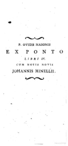 P. Ovidii Nasonis Tristium libri 5. Epistolarum ex Ponto libri 4. Cum notis novis Johannis Minellii in duos tomos distributi 2 P. Ovidii Nasonis Epistolarum ex Ponto lib. 4. et ejusdem Ibis. Jo. Henric. Kromayerus recensuit, adnotationibus ad modum Johannis Minellii nec non indice rerum, & verborum instruxit