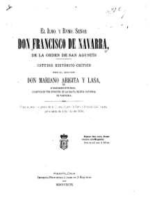 El Ilmo. Y Rvmo. Señor Don Francisco de Navarra de la orden de San Agustín: Estudio histórico …