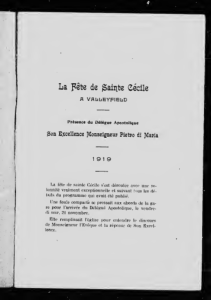 La Fête de Sainte Cécile à Valleyfield [microforme] : sous la présidence de Monseigneur Pietro di Maria, délégué apostolique