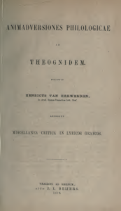 Specimen literarium continens disputationem de dispositione verborum in lingua Graeca, in lingua Latina et apud Plutarchum, cui accedunt commentarioli in libros de iside et osiride et de genio Socratis