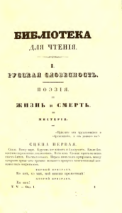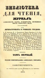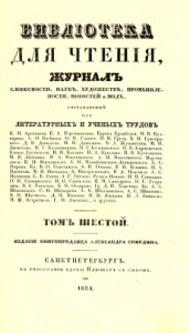 Biblioteka dlia chteniia [serial] : zhurnal slovesnosti, nauk, khudozhestv, promyshlennosti, novostei i mod